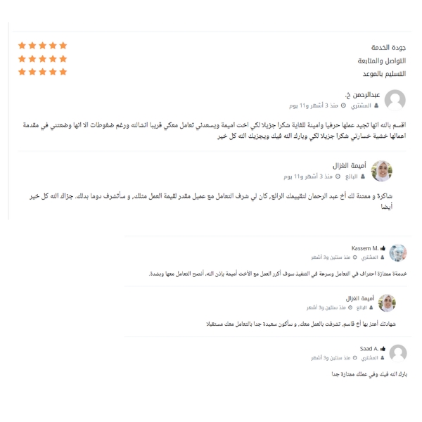 خدمة ممتازة من الاخت اميمة بارك الله فيها انصح بالتعامل معها شخصية محترفها ومتقنه فى عملها